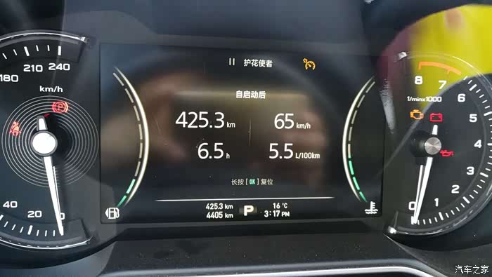 到下午3点17分时候显示跑了425.3公里,续驶里程233公里,均速65公里/小时,油耗5.5个↓↓↓。至此,结束了第一天的行程并与媳妇的妹妹一家会合在一起游玩。