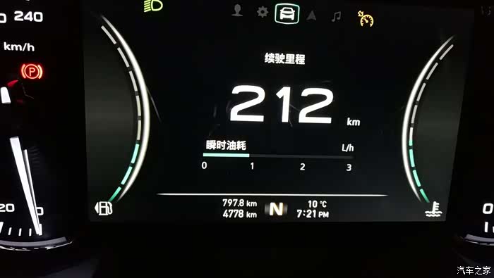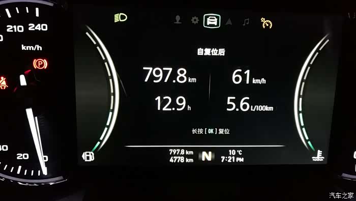 今天直到晚上7点21才收车,里程累计跑了797.8公里,显示续驶里程212公里,均速61公里/小时,油耗5.6个↓↓↓。
