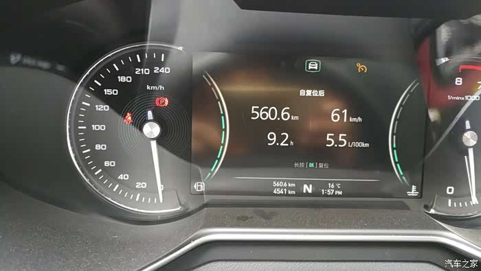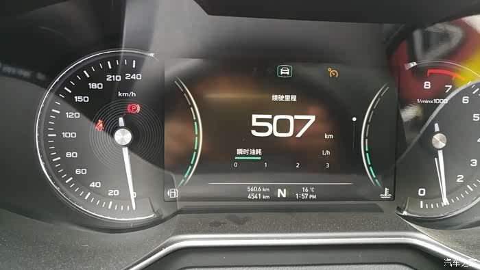 在二十四道拐玩了近1个小时,到1点57分将要开往下一个景点时,跑到了560.6公里,显示续驶里程507公里,均速61公里/小时,油耗5.5个↓↓↓。