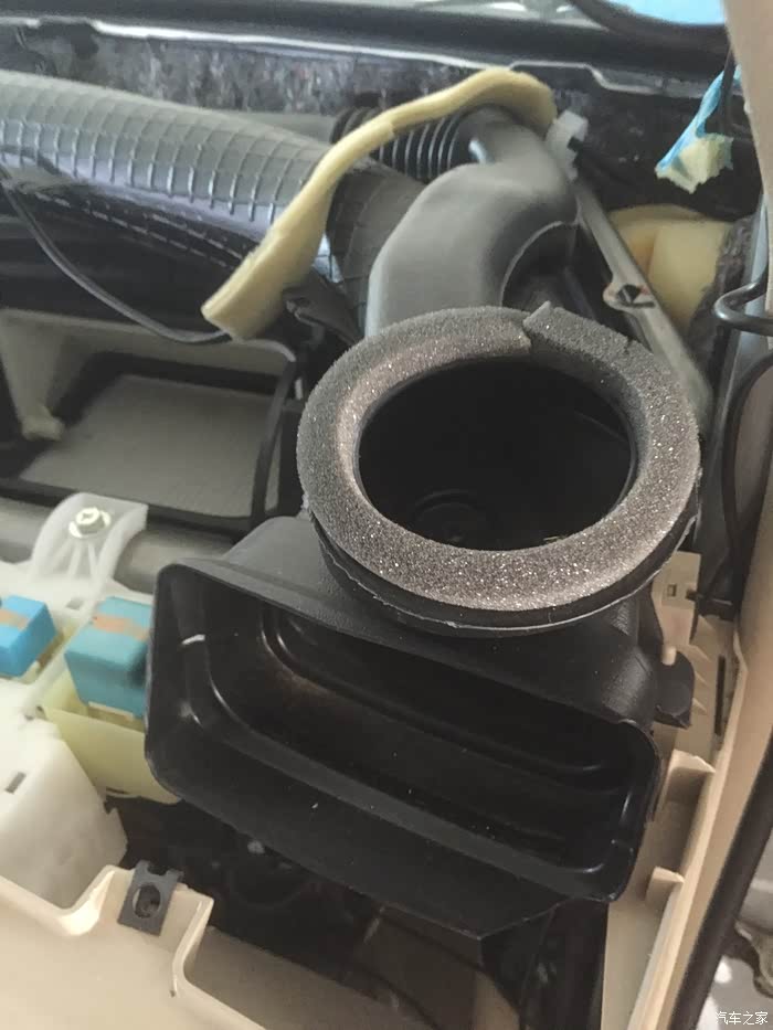 拿掉盖板后,可以直接看到空调滤,刚换的,不是太脏。