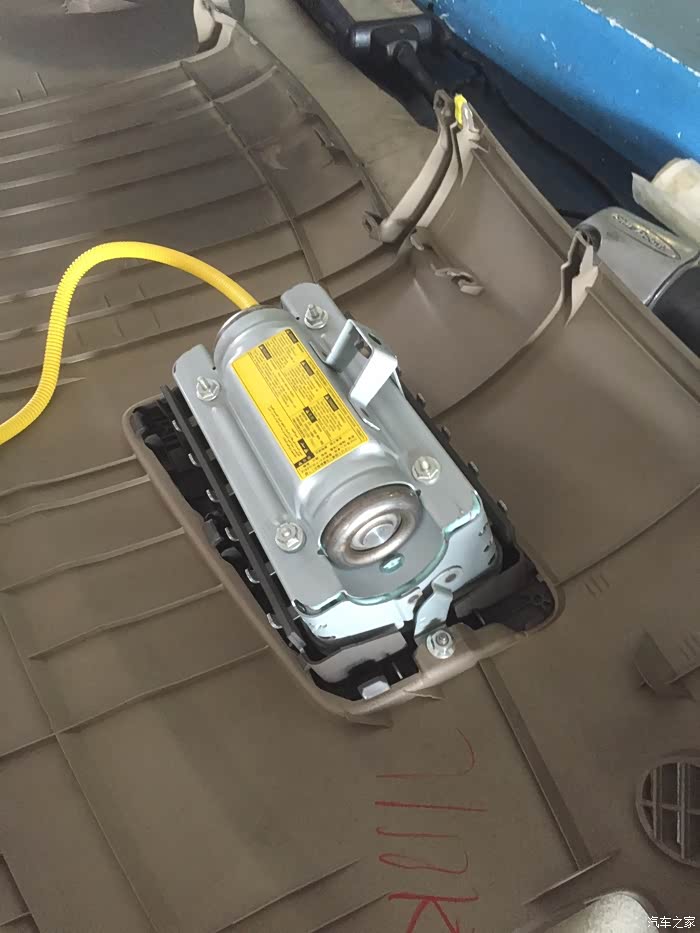 这个是拆下来的安全气囊,那个像铁罐的东东就是气体发生器,我觉得这个气体发生器看起来质量很好,比新换的看起来要好。