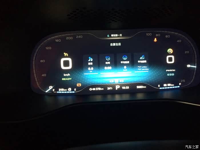 出发复位清零,油续航318(油箱30升,满油414,318大概还有22升)电60.