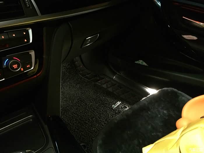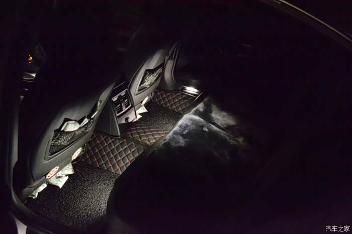 后座下方的照明灯。4S送的脚垫竟然没有开口,果断扔了。新买的脚垫十分匹配。