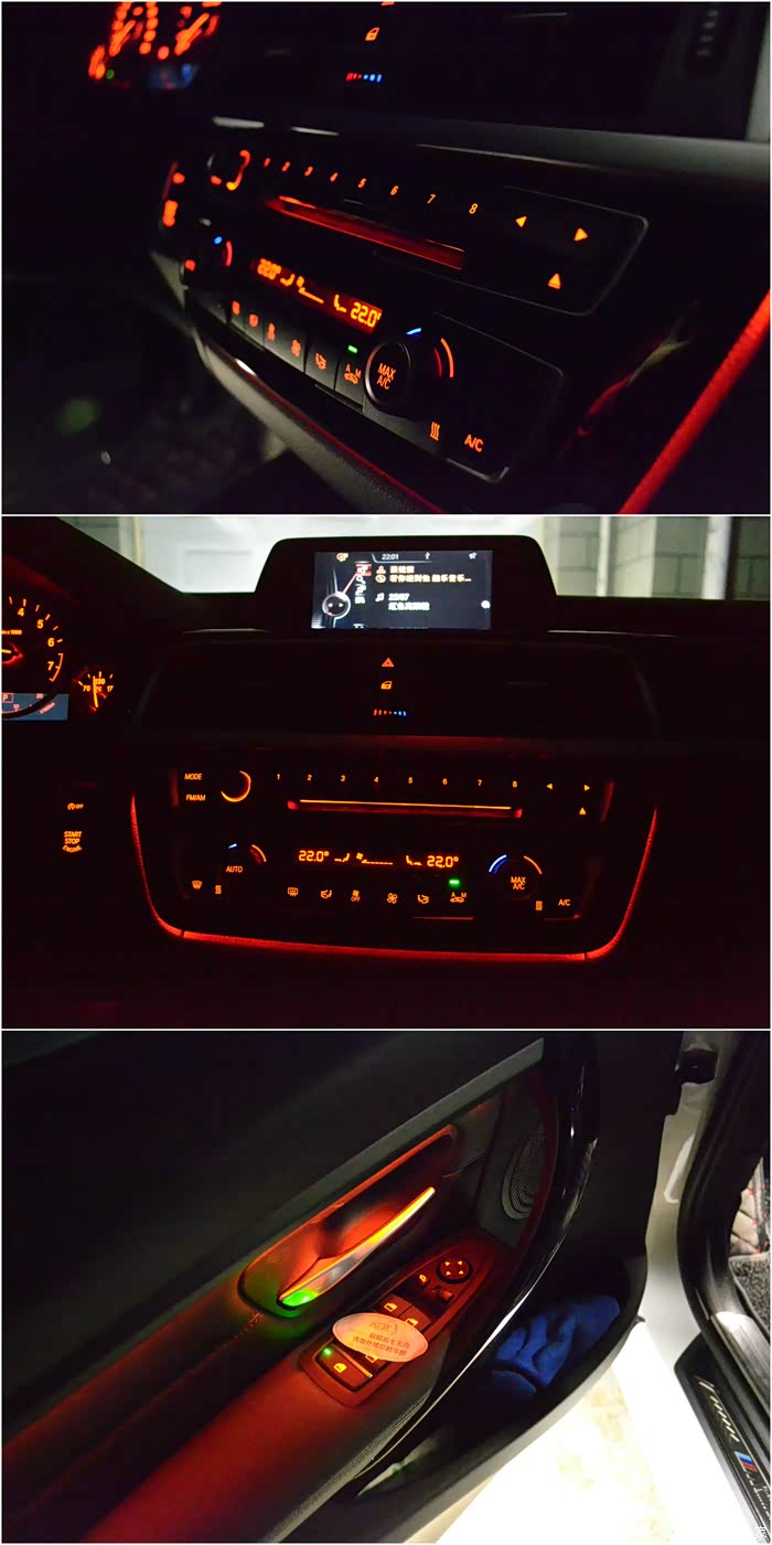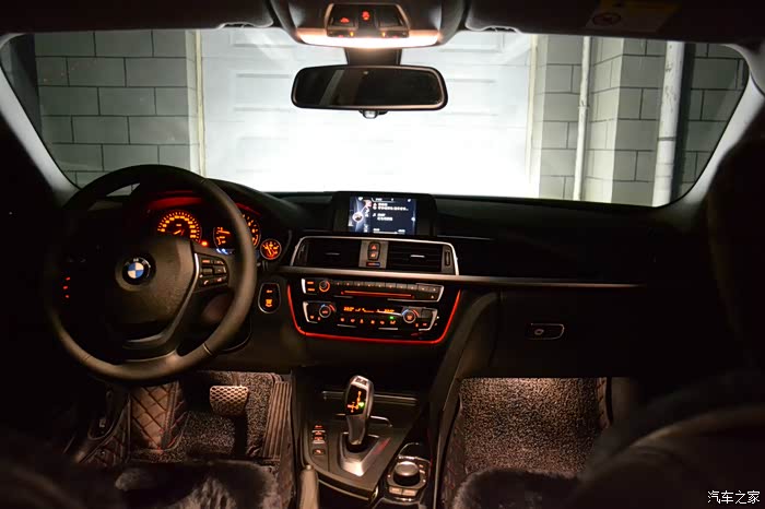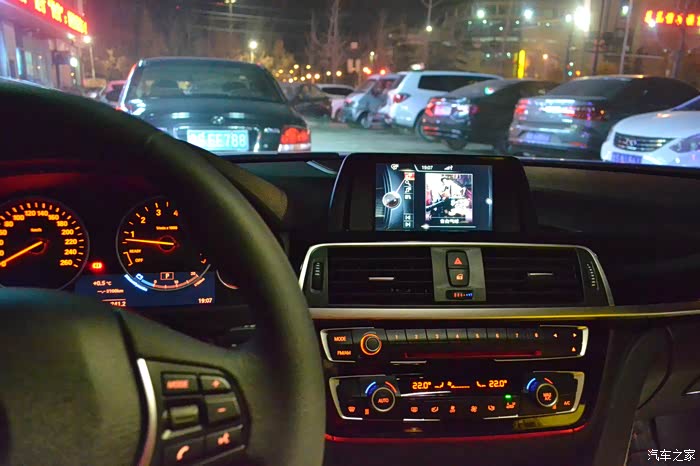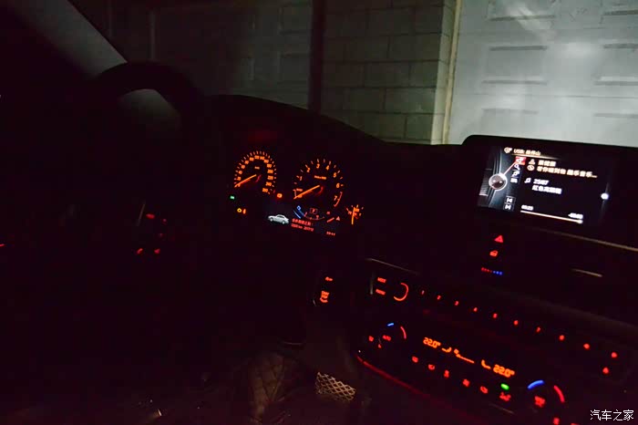 夜间中控全景。我还挺喜欢宝马的中控风格的,简洁实用。奔驰的中控乍看惊艳,看多了审美疲劳。
