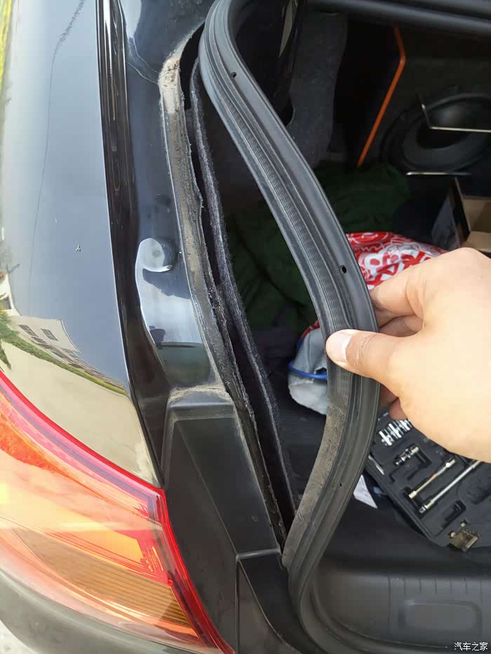 接下来更换刹车灯,掀开胶条