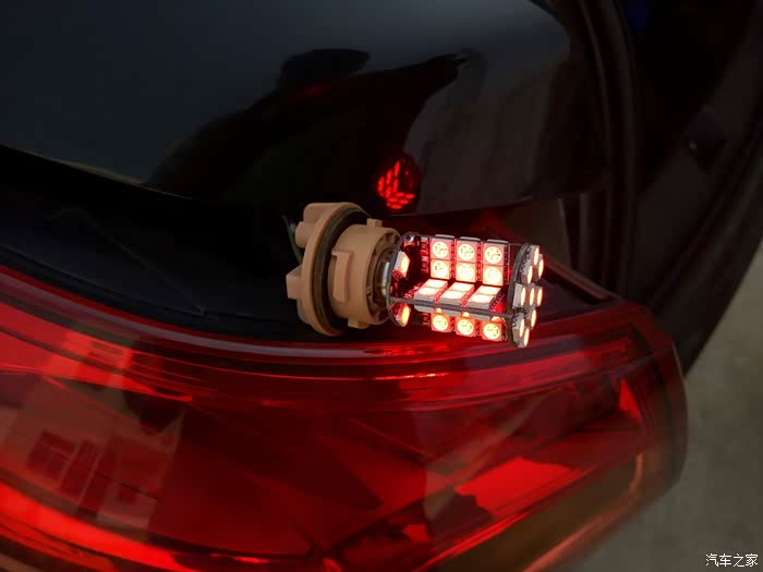 3年,左面的刹车灯瞎了。为了保证安全,果断更换。全部换成led