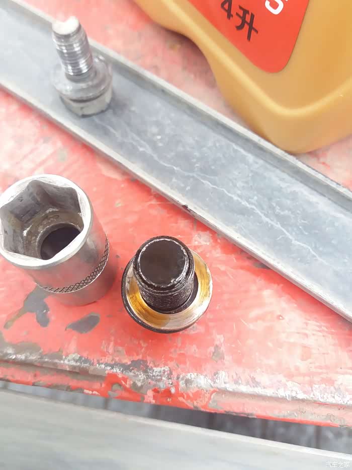 油底壳放油螺丝上的旧机油,看着还不算浑浊。全合成1万公里保养完全没有问题。