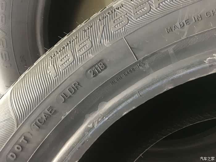18年21周,这个也要说一下,新胎日期的底子微微凹于胎壁,原车卸下来的日期底子微微凸于胎面。应该是改版带来的。