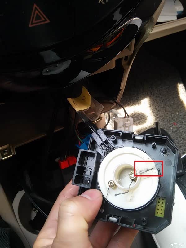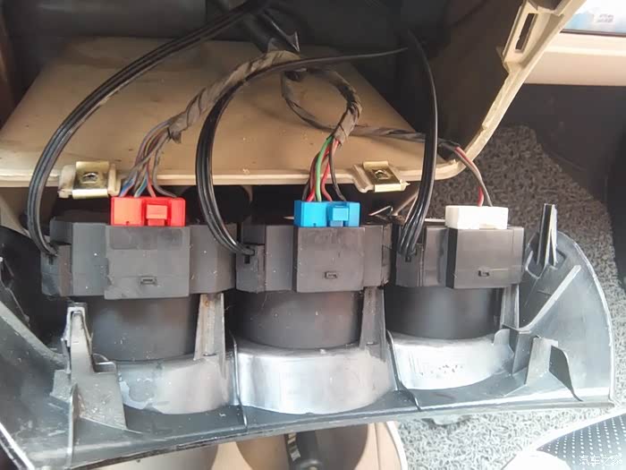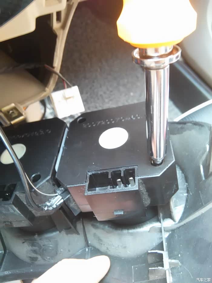 红圈里是内外循环开关的风门调节转盘,我觉得不拆中控台面好像够不着它。也许利用特殊工具能够到也说不定。