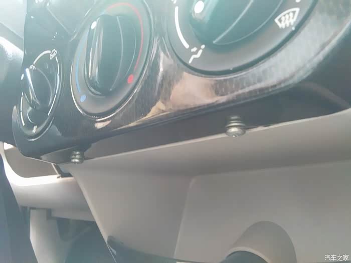 用十字螺丝刀卸下空调面板下面的两颗螺丝。然后双手同时抓住空调面板两侧(主要用力点是内外循环开关的左上部位和模式开关的右上部位)缓慢均匀用力拔出面板。