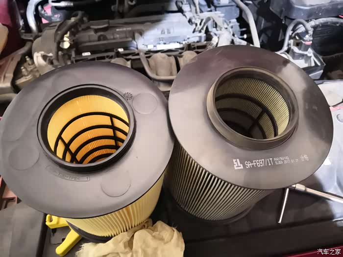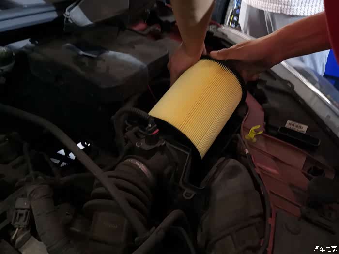 目测已经很脏了,一般建议没2500km至少清吹一次(沿滤芯褶皱纹路方向清吹,气压不宜过高)