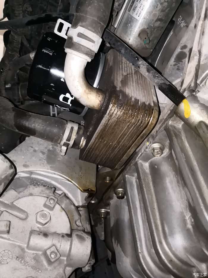 经过半个多小时,机器内尾存机油基本滴完(有条件的可以空盘两圈发动机,更好排空尾存机油),安装机滤,要用新机油在新滤芯胶圈上面涂抹均匀,加强密封性。换机滤后一定把油垢擦拭干净,方便检查有无滴漏现象,排除隐患