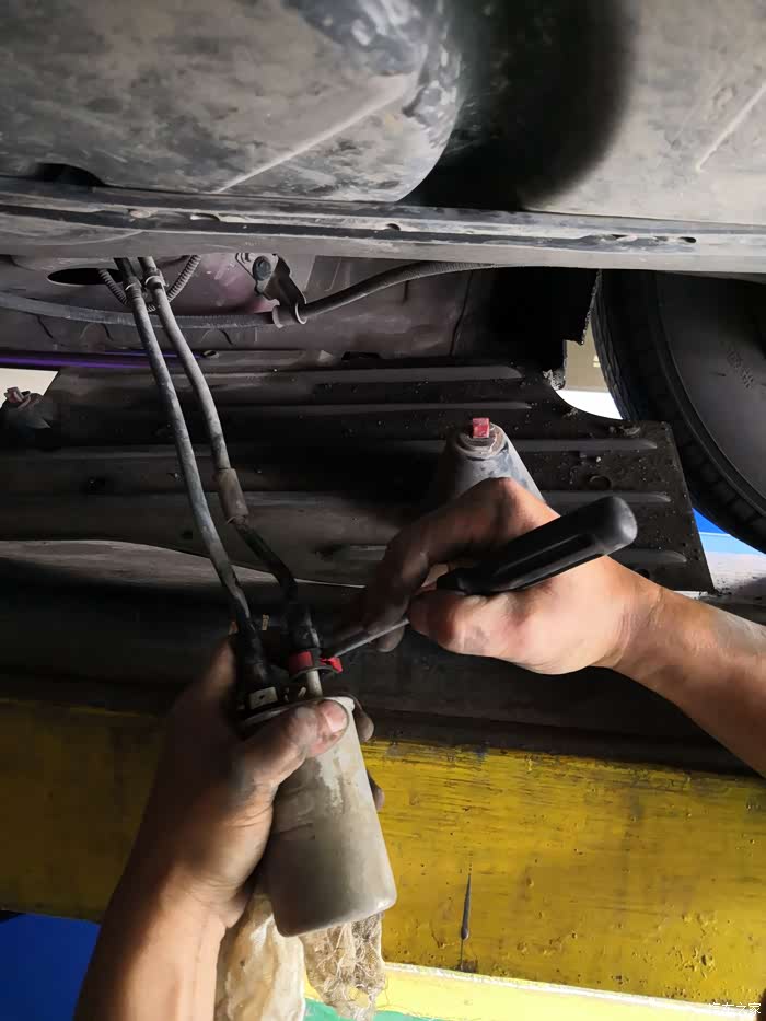 拆卸汽油滤芯(位于右后轮前上侧,注意有护板)