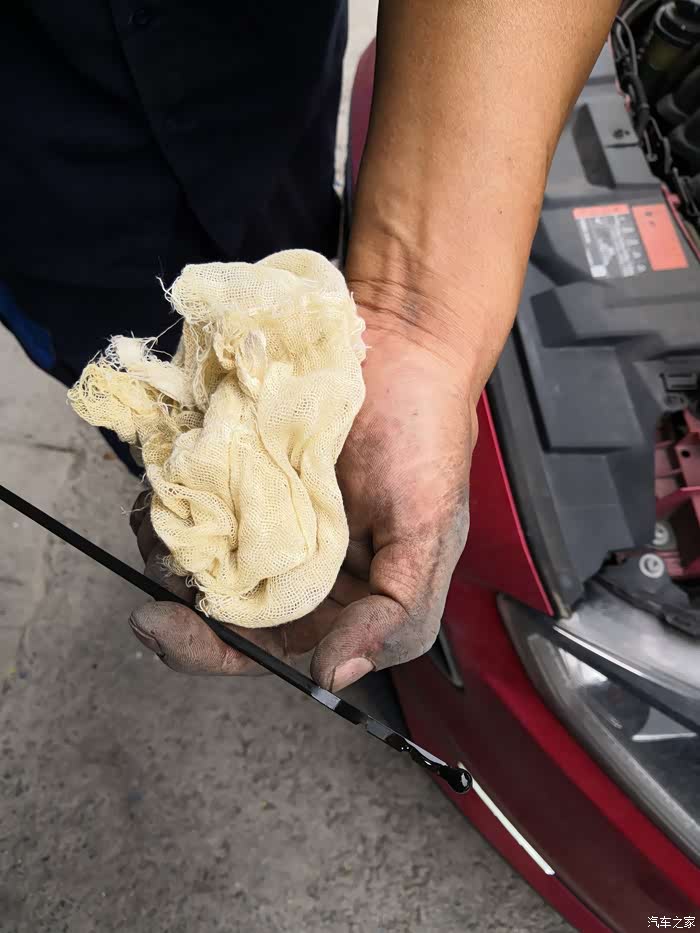 剩余机油,注意看刻度位置,一定把剩余机油拿回,方便进一步检查机油,加注补缺