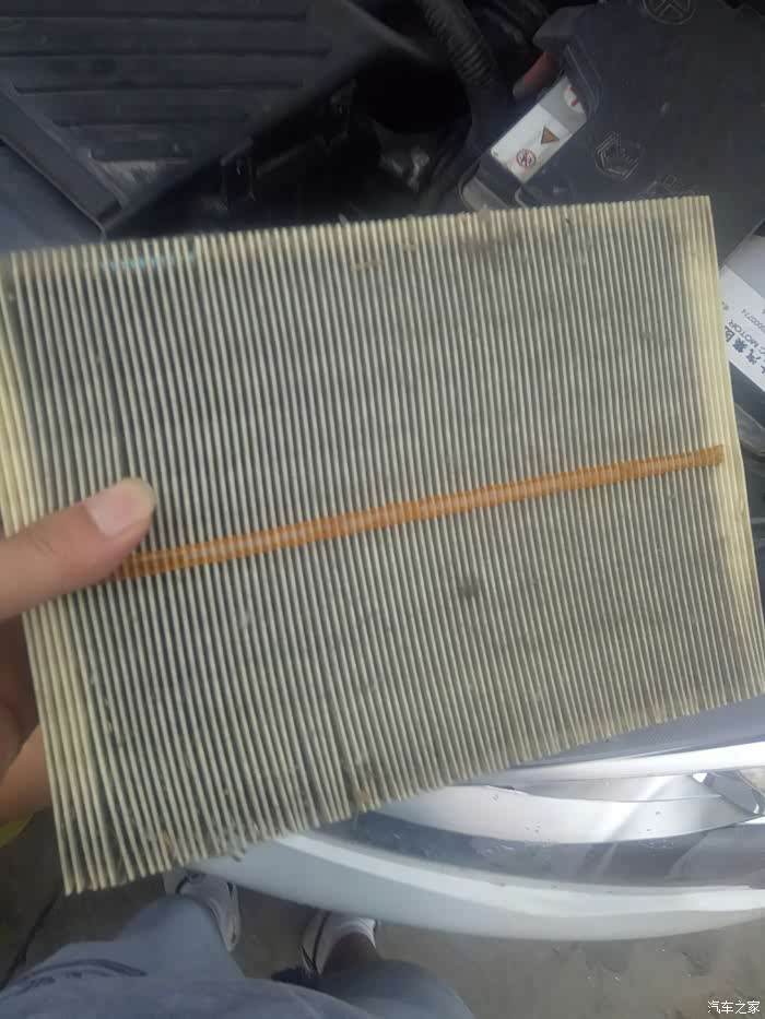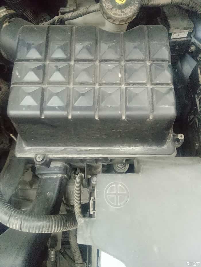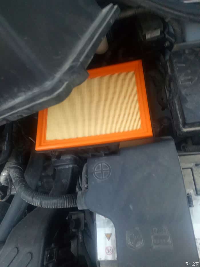 打开引擎盖可以看到这个,卸掉几颗螺丝就可以了,这就是空气滤芯的位置