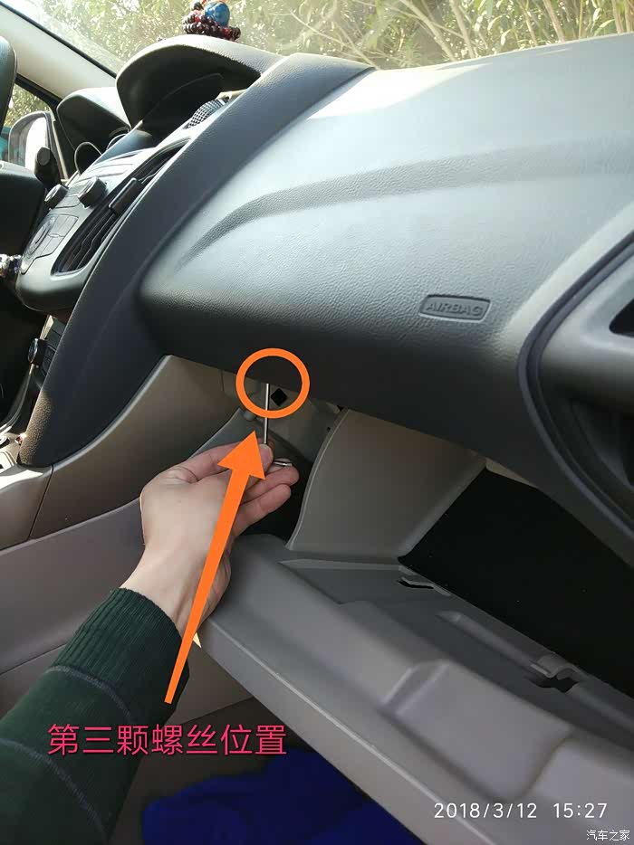 手套箱5颗螺丝拆完还拿不掉,左右摇晃手套箱让卡扣脱落,才能拿出手套箱
