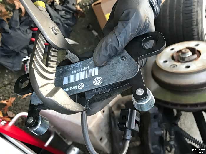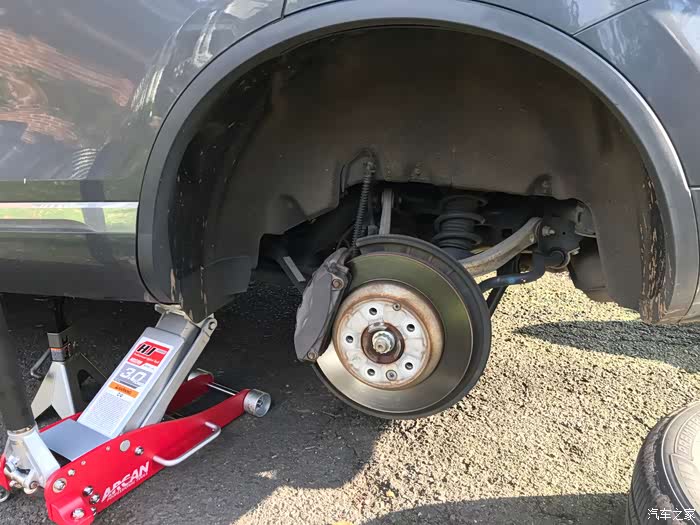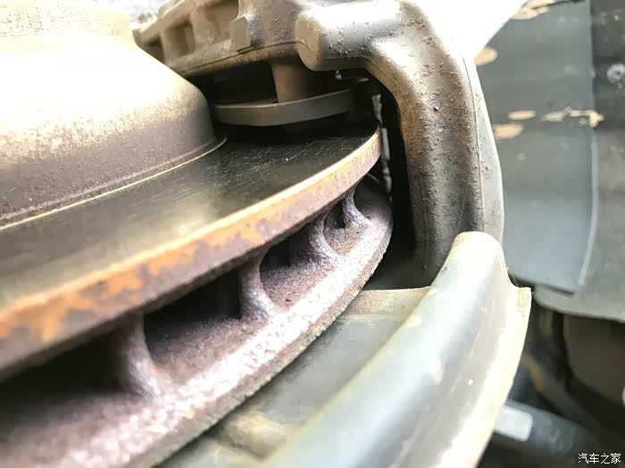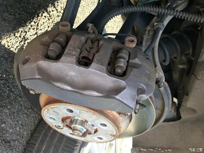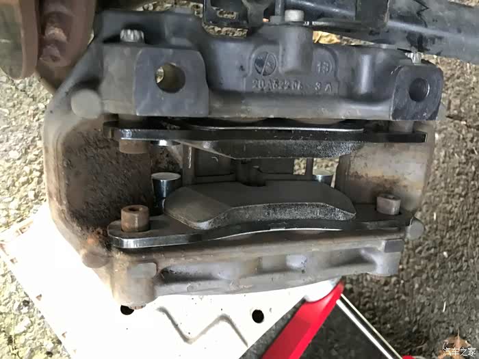 从这个角度可以看到刹车片其实还有一点,起码传感器提示磨损灯,但是想着在冬天雪季来之前就换了吧。