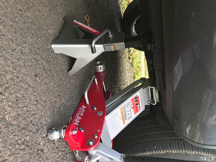用液压千斤顶将车子顶起,记得要放上安全支撑!!!!!!!!