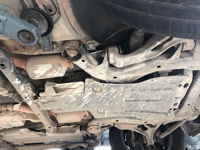 在抬起来放机油的时候,顺便看了下底盘,虽然看起来很脏,但是开起来,感觉挺扎实的,偶尔跑跑烂路,如今给人的感觉依旧挺整的,不会散。另外,底盘高就是好,跑过不少的烂路,没有拖过底,车子的可靠性还是可以的。