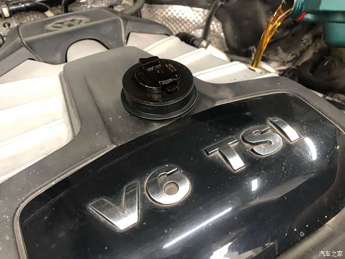 放完机油后,师傅给这台V6的机子注入新鲜血液,由于是V6引擎,所以加的机油量比一般的4缸机要多,当然价格也高了一些。