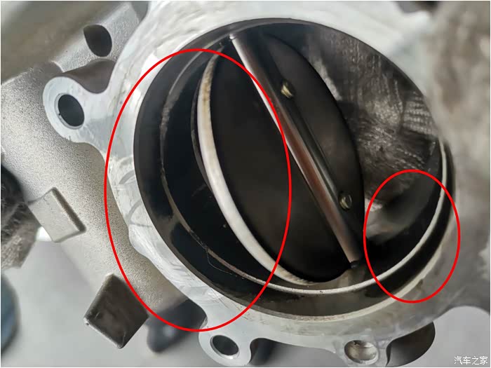 最常规的就是洗节气门了,图中黑色的就是节气门的积碳。记得没洗多久,又这么脏