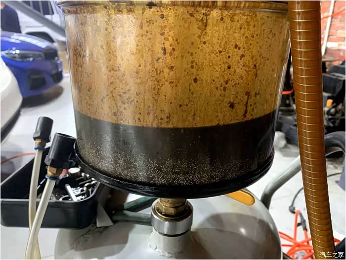 机油和变速箱油都混在这里,放油时,已分不清哪个是机油哪个是变速箱油,都是一个黑色