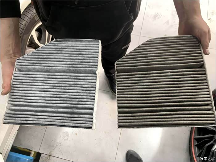 空调内置活性炭滤芯,不用我说,也看得出来哪个是新的吧