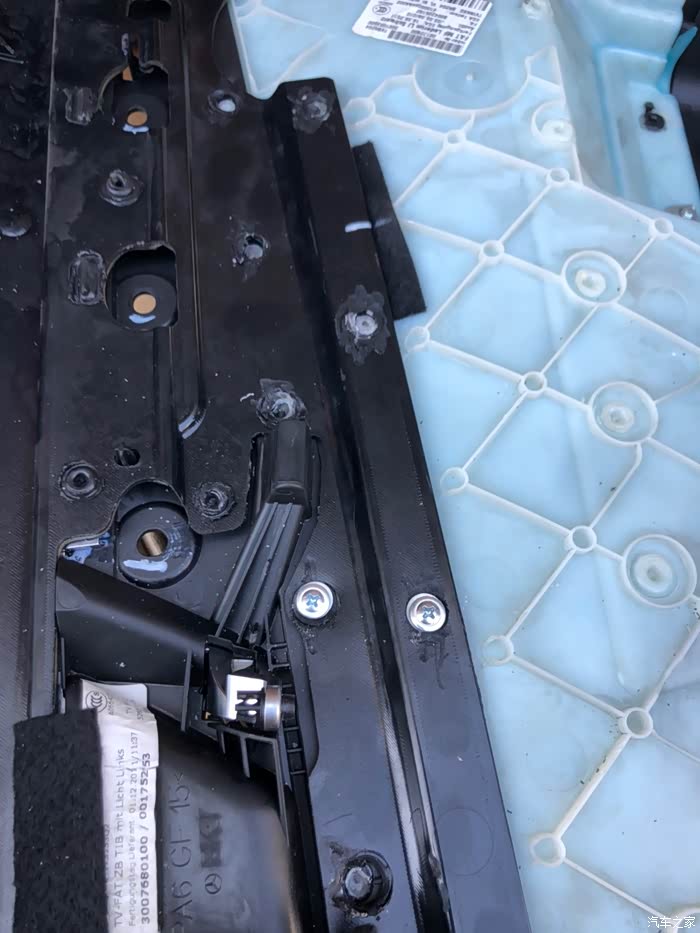 坑爹的事情来了,想要拆把手就要把内饰板拆下来,全部都是热熔的,