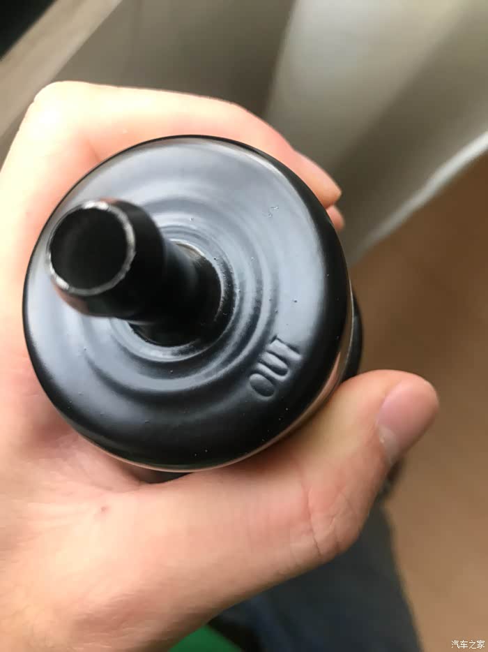 上面标明out的那端是出气端,另一端则是进气端,下面我们就来看看爱车本来带的燃气滤芯,没有商标的三无产品,估计真的是改气的时候安的一直没换