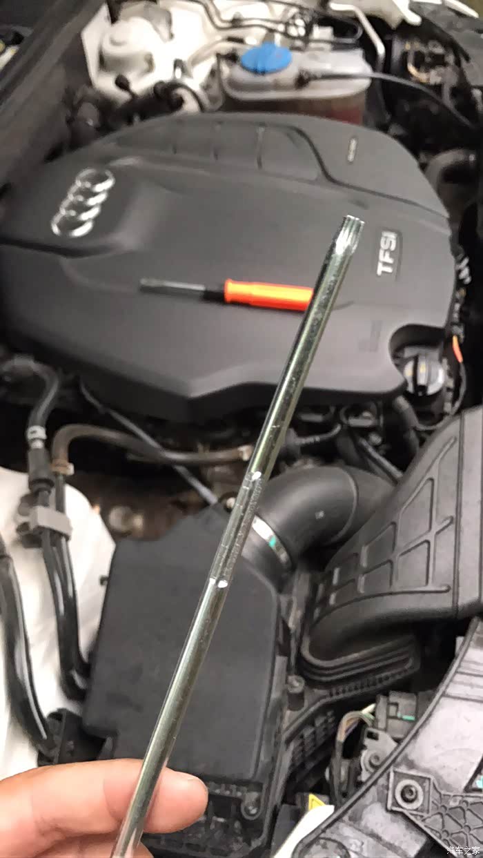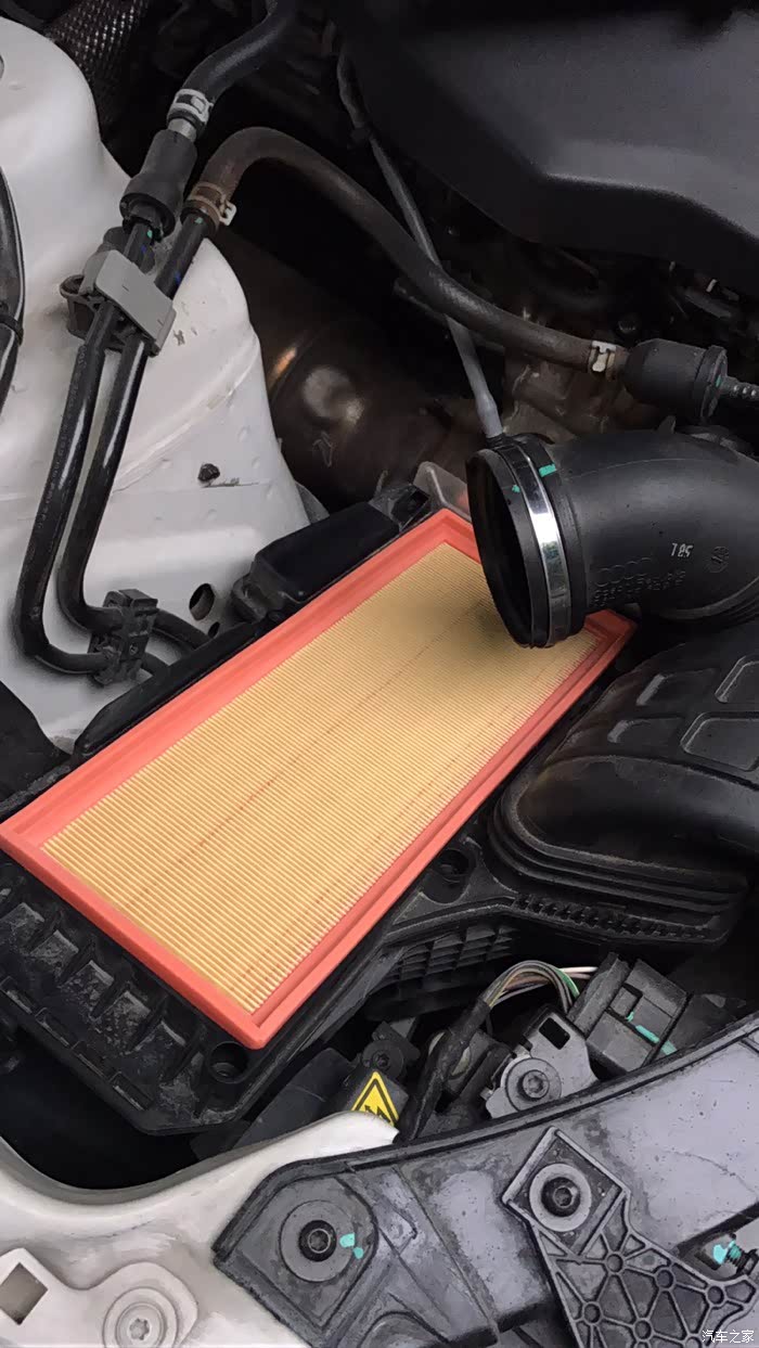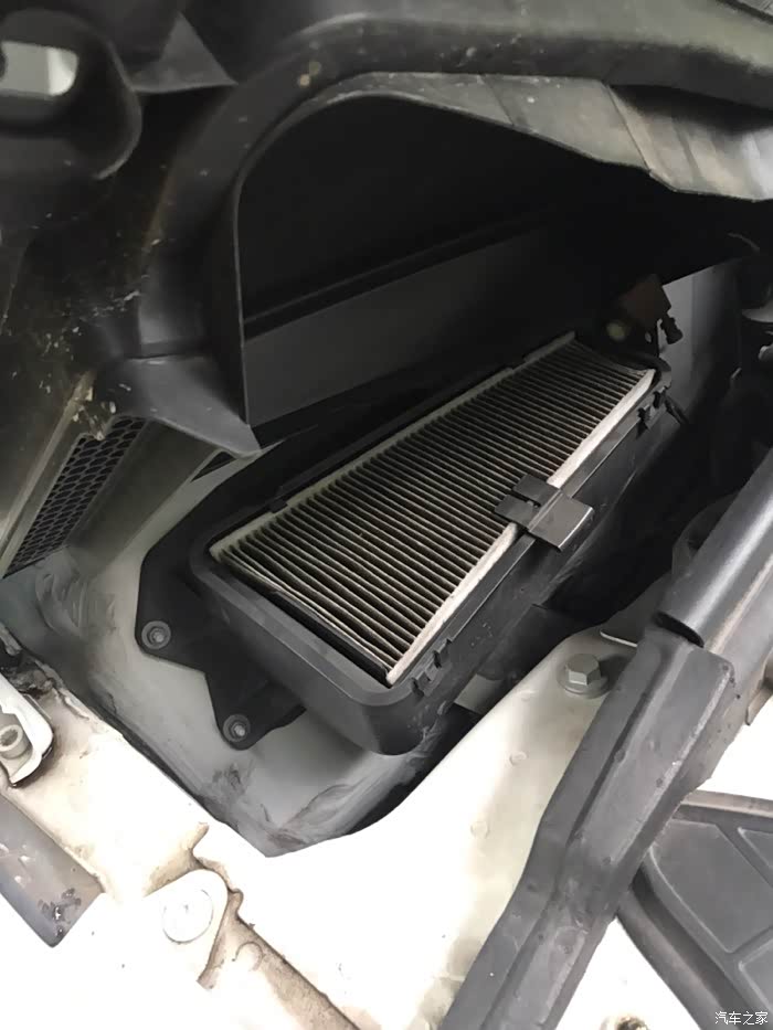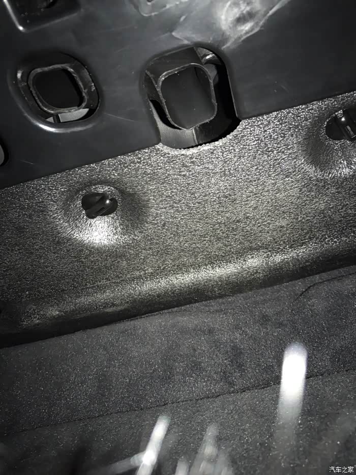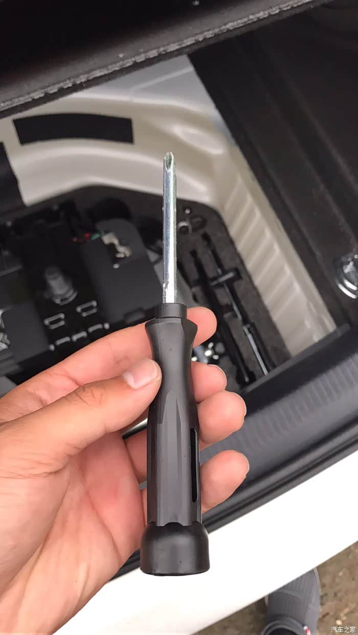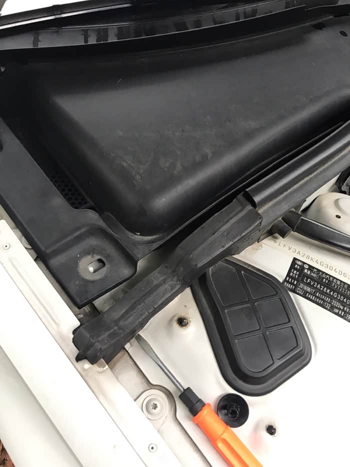 4s店之前很坑。都没给我安好。最左边的塑料板都没给我按进去。 接下来是发动机空滤,这个要用到工具在后备箱轮胎下面。