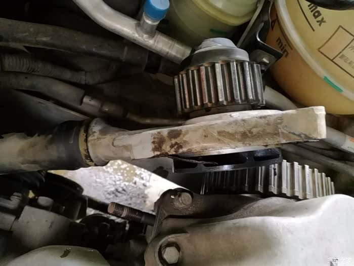 装上就行了,5年半8万公里,正时皮带、发电机皮带、惰轮还好我想用到10万没问题,正时皮带张紧轮、张紧轮有一点点沙沙声,水泵轴承横向有一点点松动,助力泵皮带最该换不过也不会断。换了水泵后加防冻液5升多。换正时有两个难点,一个是螺丝怎么卸,一个是正时皮带的张紧。本来准备了拉马卸那个轮子,但两条皮带卸了,螺丝卸了,那个轮子就可以用手拿下来。这个螺丝是发动后自己越转越紧吗?应该不会越转越松,要不然那螺丝不都自己掉下来,我是没有上紧,因为那个轮子跟着转。正时皮带有方向,安装时注意下。