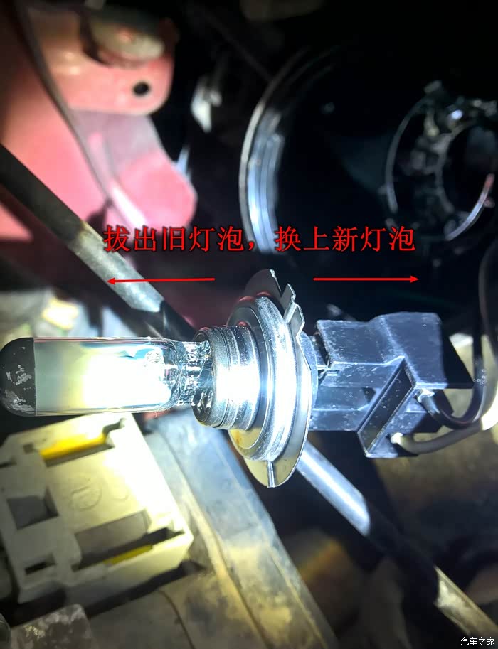 把新的灯泡换上,一边从外面观察灯泡的位置一边安灯座,卡子卡稳了就成功了,注意保持灯泡清洁。
