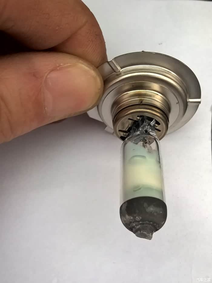 遮光罩都炸开了,后来取出灯泡后,用一弯钩铁丝伸进去拉回来的