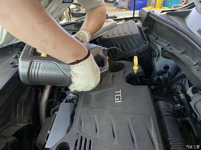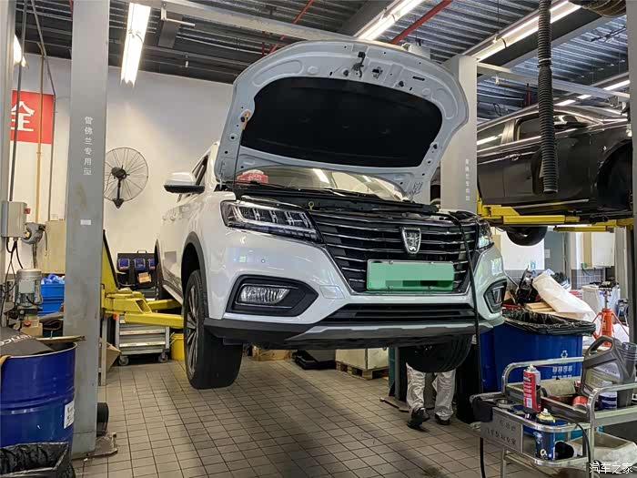 师傅正在给我的eRX5换机油,本次保养,通过上汽APP获得了1张更换原厂基础机油、机滤的8.8折优惠券,维修的师傅给我选的机油是适合夏天高温使用的,想的非常的周到。