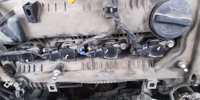 拆下的点火线圈。建议拆一个点火线圈换一个火花塞,这样避免杂质掉进气缸里。