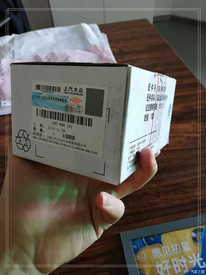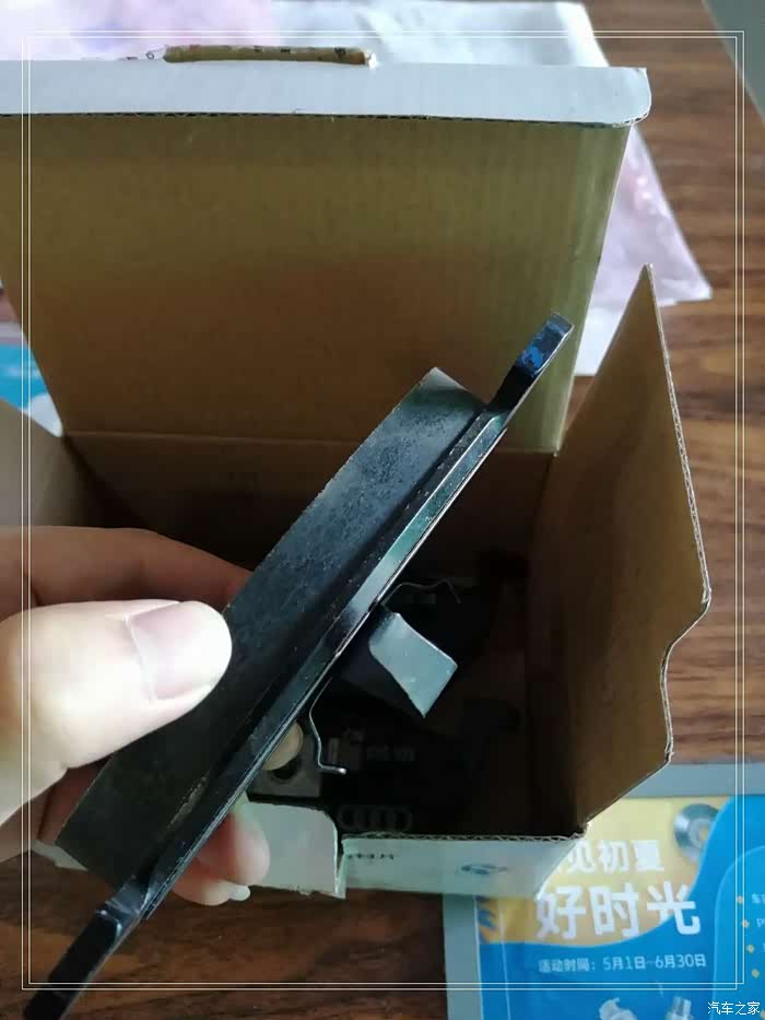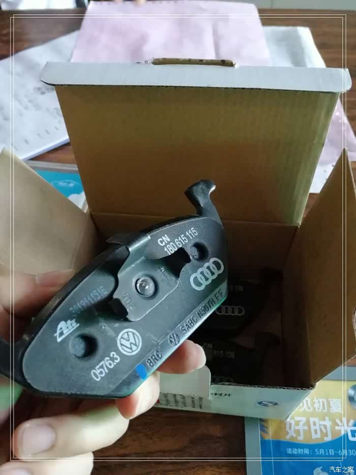 上周去店里保养时候售后小哥发现我系统账户里还有一个刹车片抵用券没用,建议我用掉,不过自己平时开车比较少刹车片还是厚的很,最后考虑了一下虽然车子的刹车片距离更换还早得很,但是本着不能浪费的原则,就想着买一套刹车片自己留着把券用掉,反正这是易损件早晚用的到,可是当时店里并没有刹车片的库存,于是让售后小哥给订了一套,一周时间就到货了,于是趁着周末去店里拿一下。