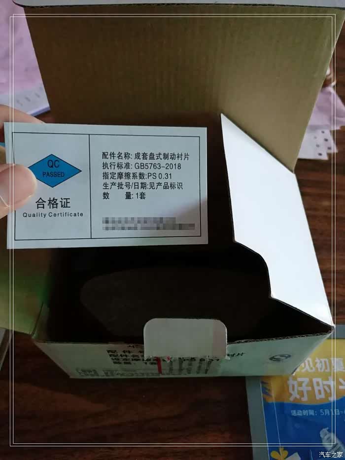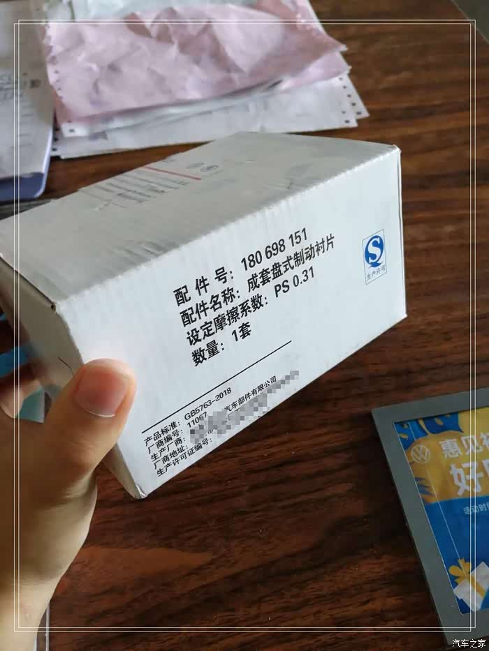 一会儿的功夫刹车片就领出来了,具体名称叫成套盘式制动衬片