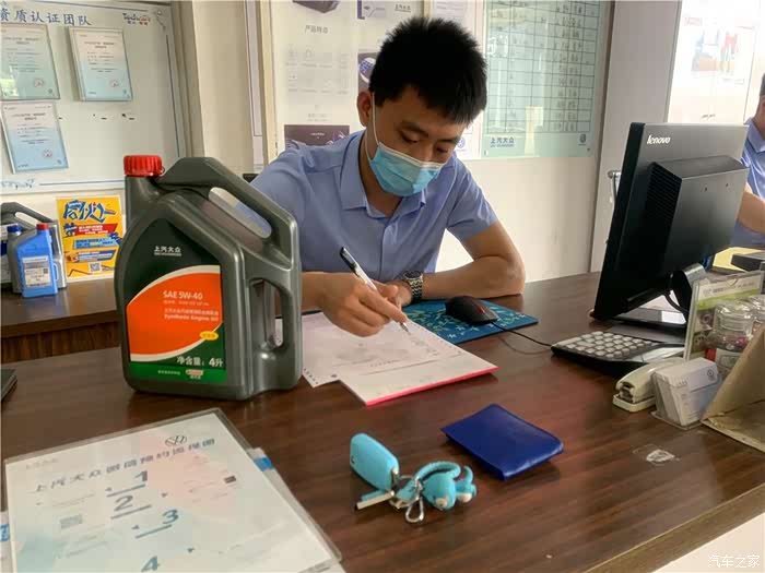 服务顾问给这次保养签订维修服务委托书,继续使用这款原厂半合成5W-40的机油。