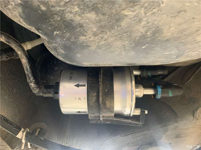 这是更换的新的汽油滤芯,按照方向已经安装到位,最后检查是否安装牢靠,防止汽油泄露。