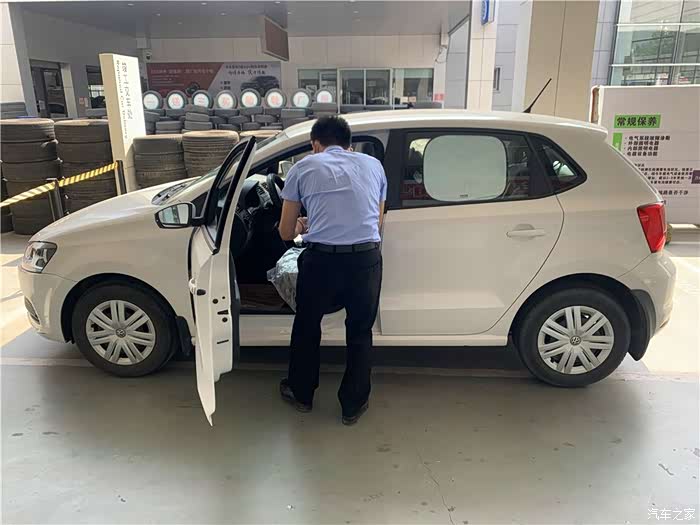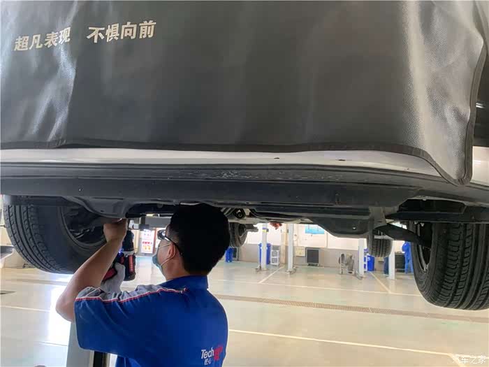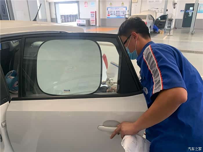 利用空余时间去店内保养,服务顾问首先给爱车带套。