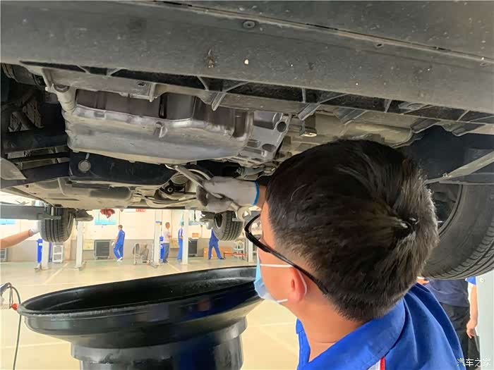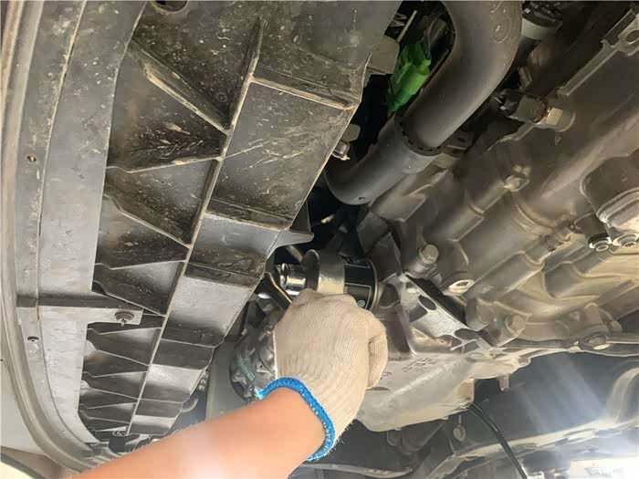 拆卸放油螺丝准备放旧机油。
