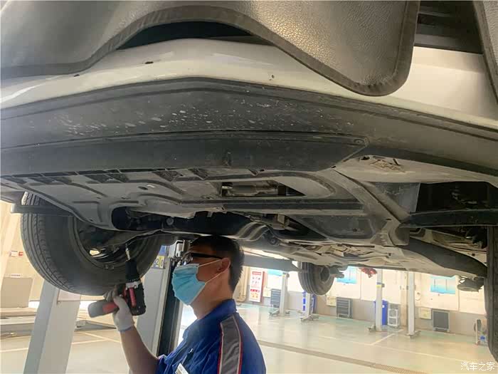 升降机升起爱车,接下来就是拆卸发动机护板。