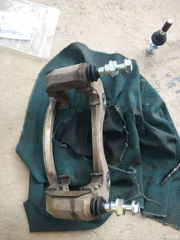 130000公里去保养的时候,发现刹车分泵分离不行,刹车异响情况也比较严重,通过对故障进行分析,决定更换刹车分泵导杆螺栓,检查中发现右后刹车分泵导杆螺栓橡胶皮套破了一个,所以干脆某宝了四套,前后各四根,一共花费108元,店家送了四袋润滑油,据说是高温油,不知道效果如何,运行中再看观察吧。扭矩无法掌握,完全靠的手感。