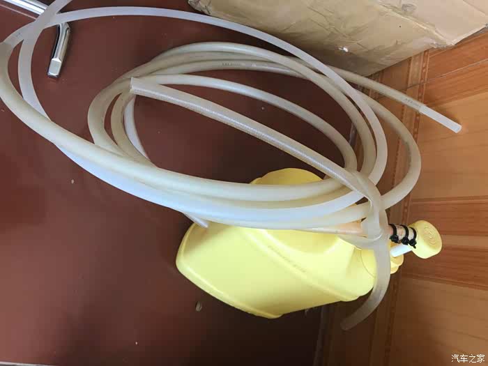 洗洁精瓶两端加长就是简易的抽油机了7.5升机油不停的抽了10分钟出油还是蛮快的,
