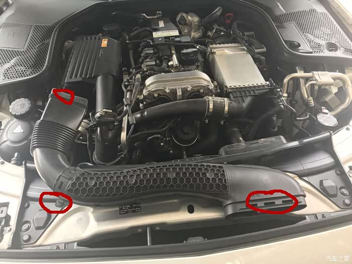 进气管左下边拧至——横杠用线拴住向上使劲拽,就可以下来两头向下摁向外掰就可以卸下。主要是为了下机滤