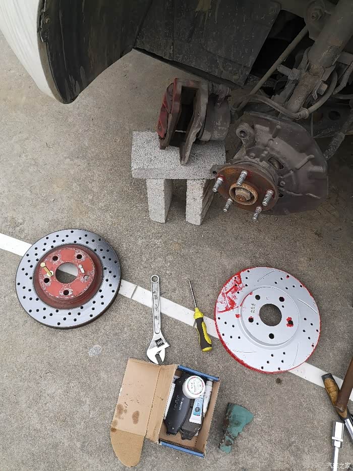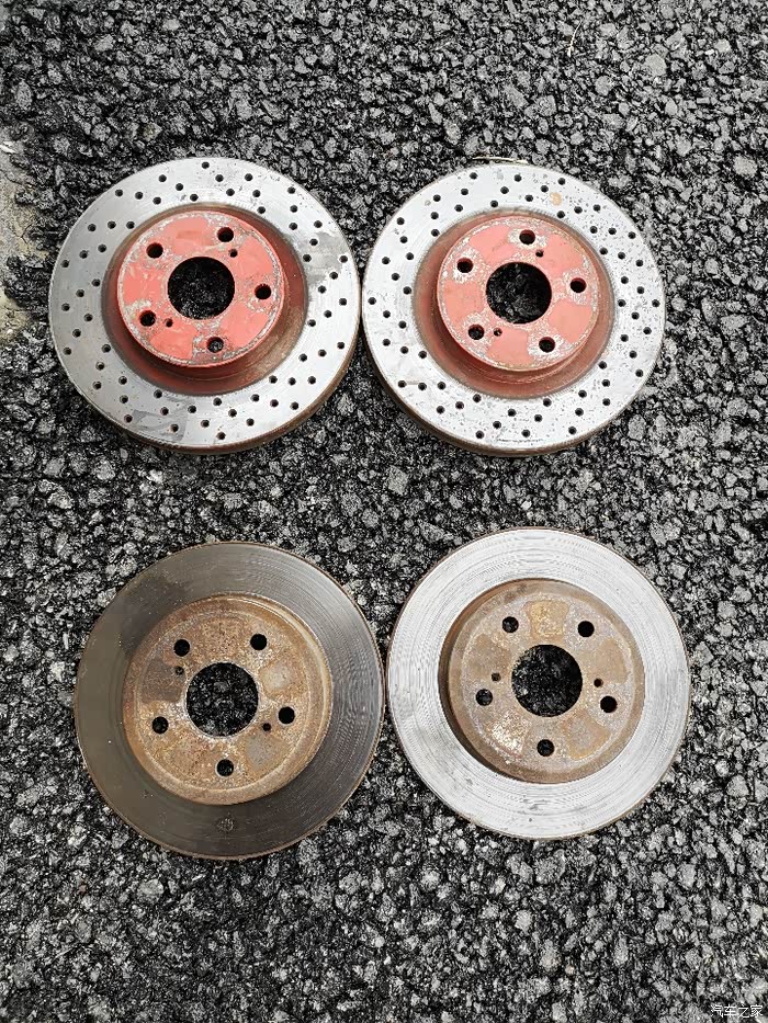 左边是拆下的打孔盘,才跑了8千公里左右。右边是准备换上的新盘,打孔划线