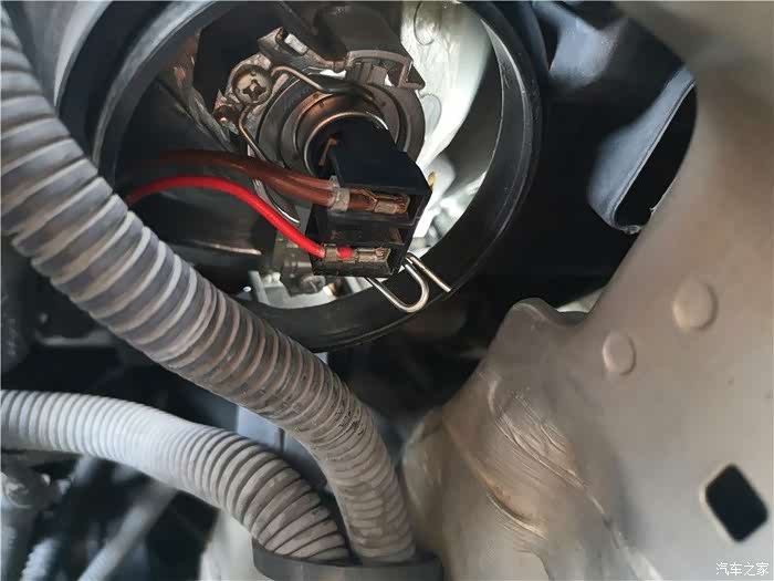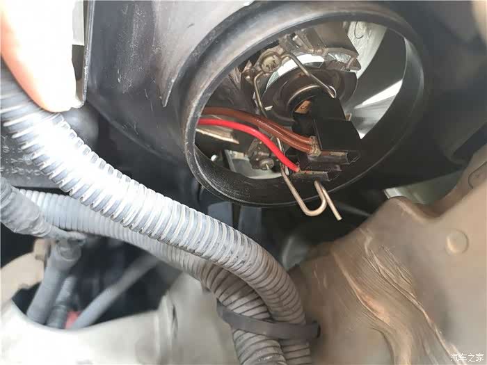 灯泡是靠一根钢丝卡住的,也就是说,我们需要先松开这根钢丝,然后才能更换。