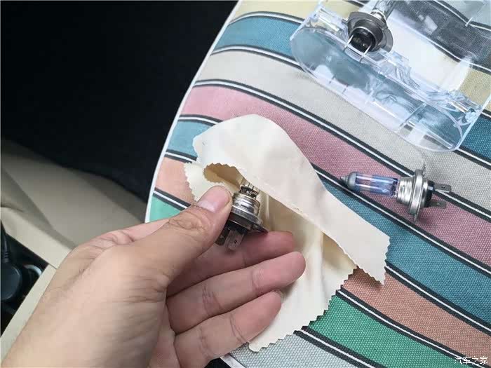 更换灯泡,特别是卤素灯泡,要注意手机不要接触玻璃,因为手上的汗水、油脂等会吸附在灯泡玻璃上,灯泡通电发热后,导致散热不均,爆裂或者影响寿命。所以一定要擦干净灯泡玻璃。