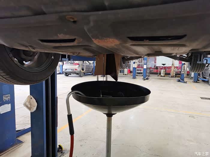 升降机缓慢的抬起,开始释放跑了7500公里的机油