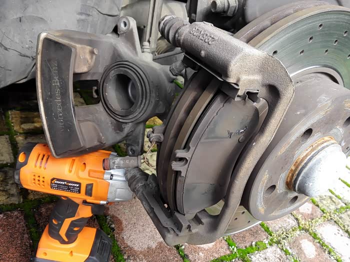 拆卸下来的活塞卡钳用东西垫起一下,或者用绳子吊起等,总之避免油管受力把油管弄坏了就麻烦了另外这个地方特别说明:右前轮有报警线与刹车片相连,记得先拔掉插头,另外拆完了用东西撬一撬,压迫刹车活塞回位(如果你有专用工具,当我没说)